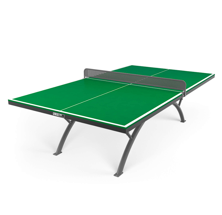 Столешница уличного стола UNIX Line изготовлена из SMС - панели с антибликовым покрытием и выдерживает многочисленные нагрузки, обладает хорошей устойчивостью к ударам, воздействию окружающей среды, влаге и температурным перепадам. Она не является горючим материалом, а также за счет высокой плотности и толщины столешницы (14 мм) обеспечивает великолепный отскок мяча и высокие игровые характеристики.
