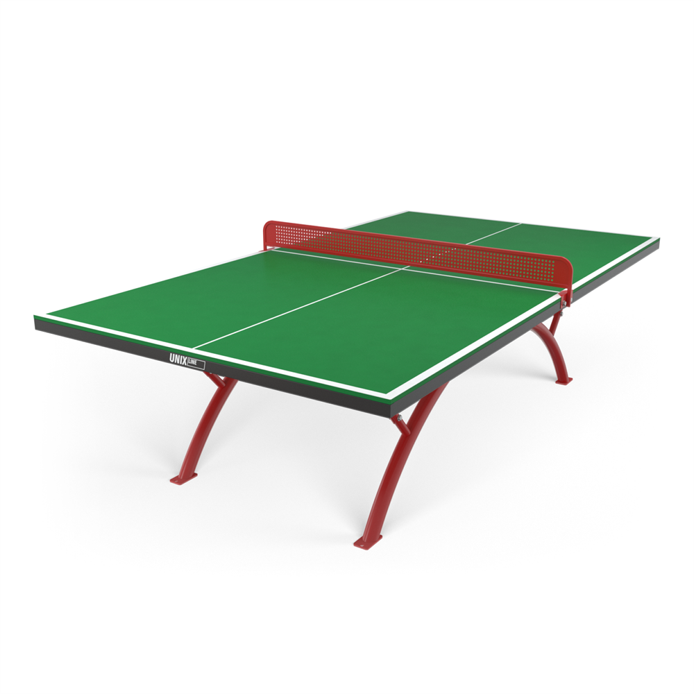 Столешница уличного стола UNIX Line изготовлена из SMС - панели с антибликовым покрытием и выдерживает многочисленные нагрузки, обладает хорошей устойчивостью к ударам, воздействию окружающей среды, влаге и температурным перепадам. Она не является горючим материалом, а также за счет высокой плотности и толщины столешницы (14 мм) обеспечивает великолепный отскок мяча и высокие игровые характеристики.