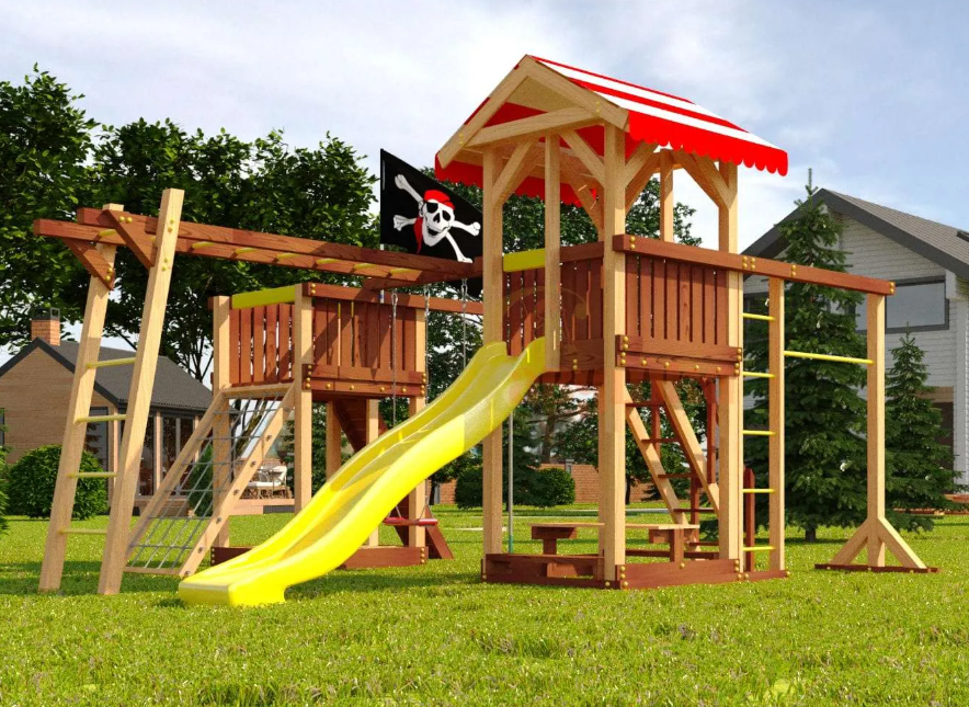 Украшает игровую площадку пиратский флаг, превращая ее в настоящий фрегат со множеством уровней, переходов, укромных мест.