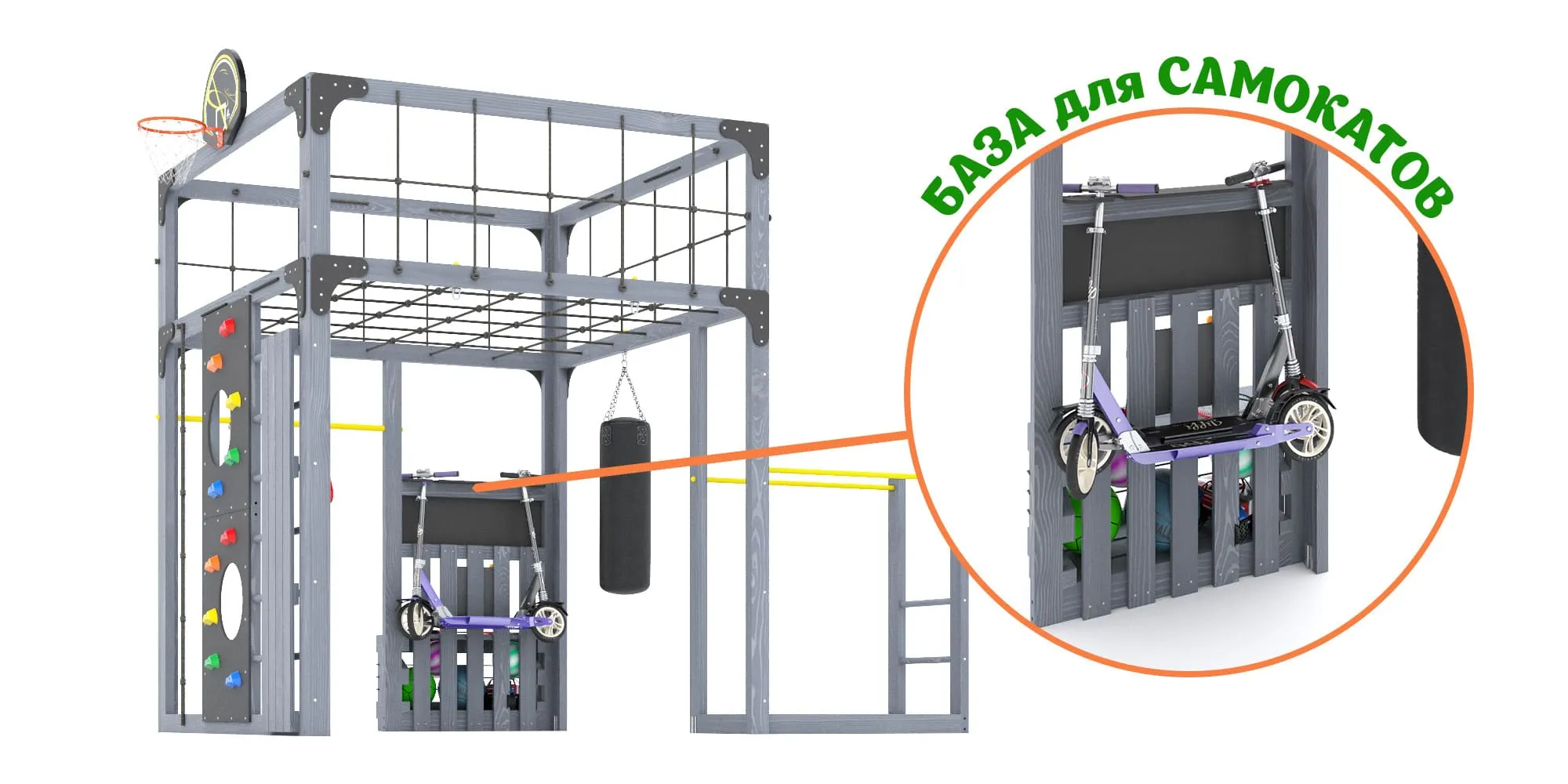 - База для размещения самокатов – 1 шт. (рассчитана на 2 самоката)