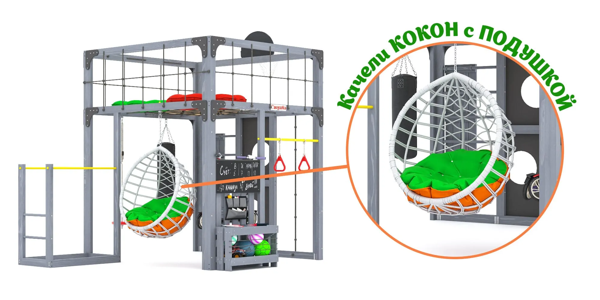 Детская площадка Савушка КУБ-1 (Серый) с подушками и коконом