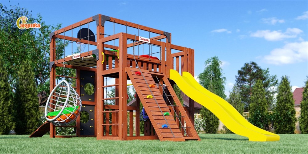 Детская площадка Савушка КУБ-3 (Махагон) с подушками и коконом — безопасный и функциональный комплекс для активного детства