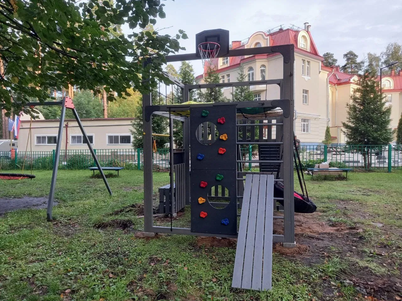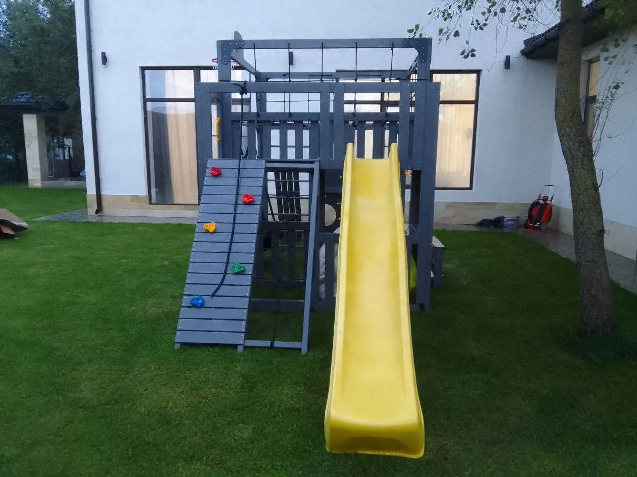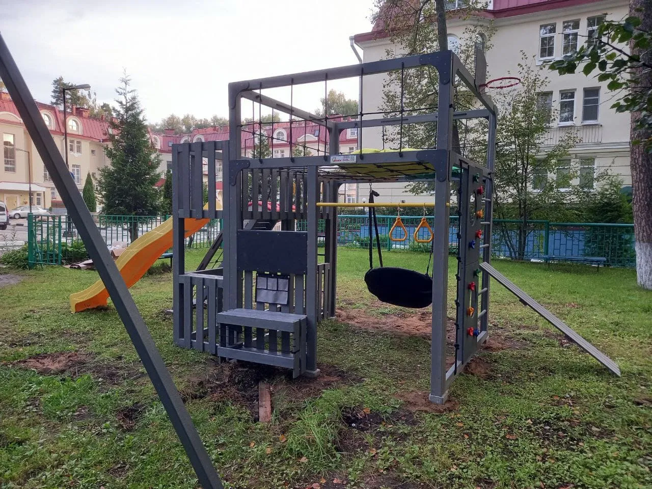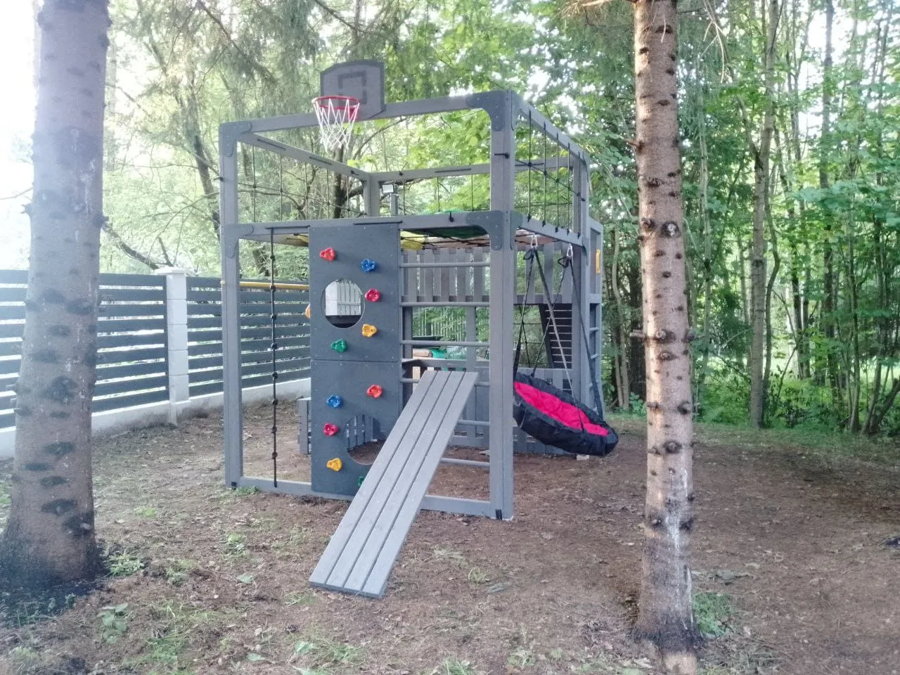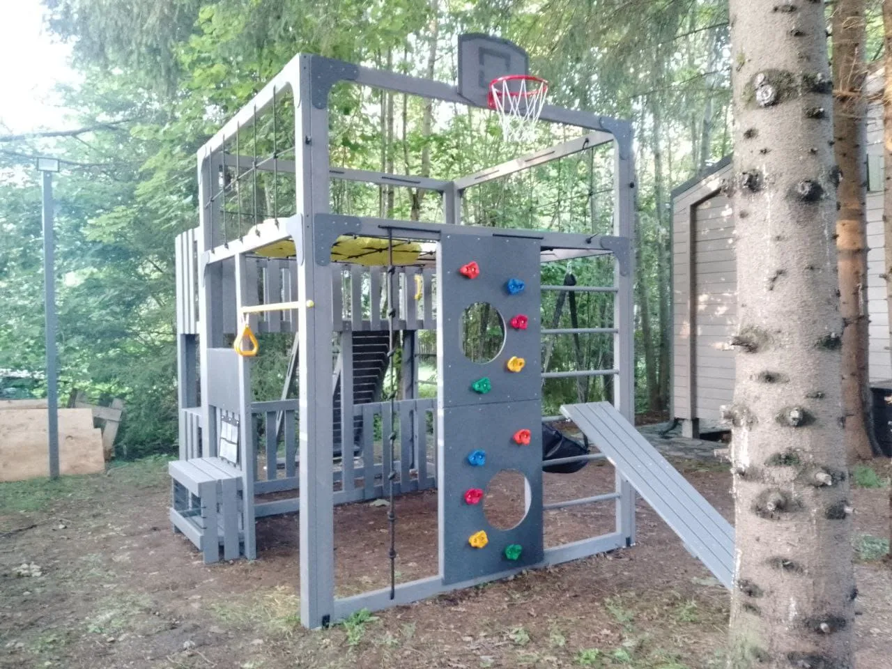 - Многофункциональные спортивные элементы: турник, гимнастические кольца — все для полноценной тренировки и семейных соревнований.