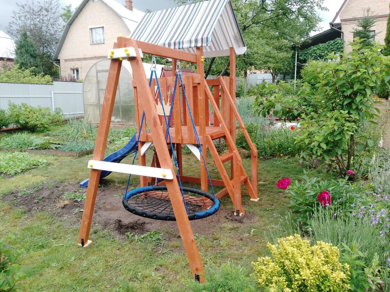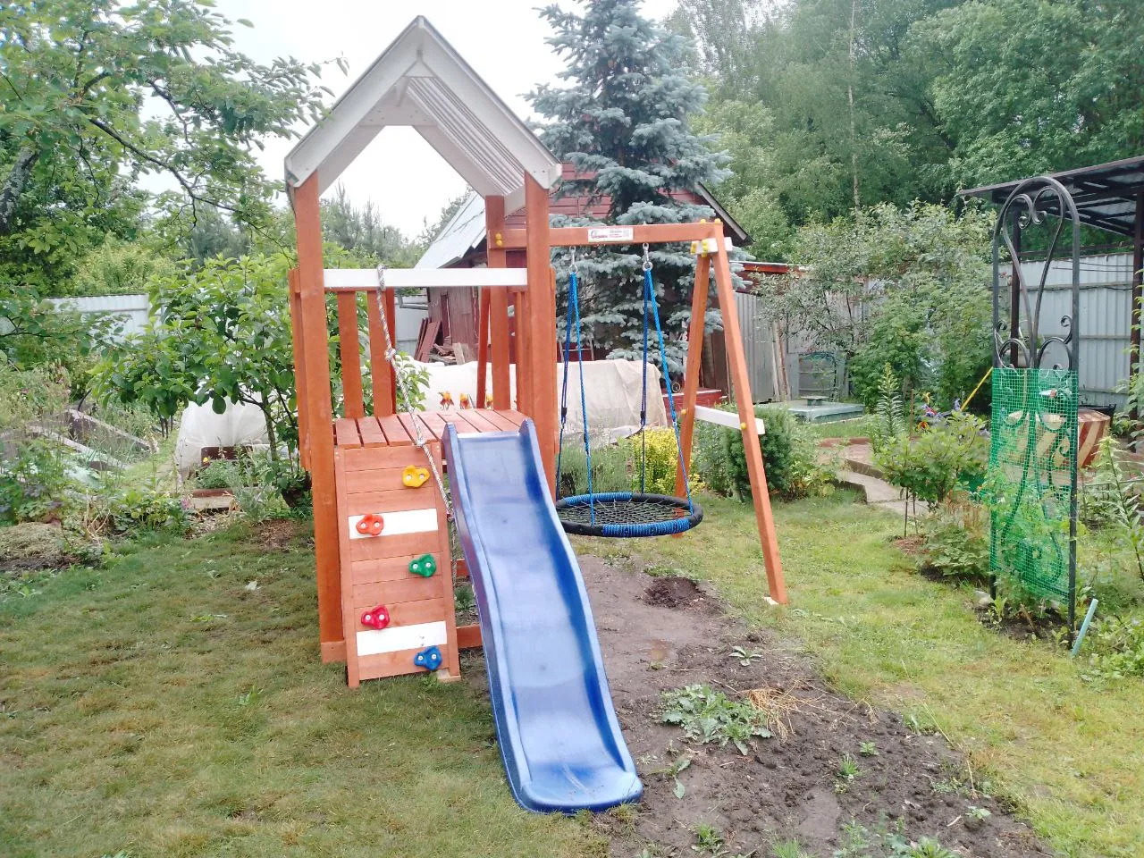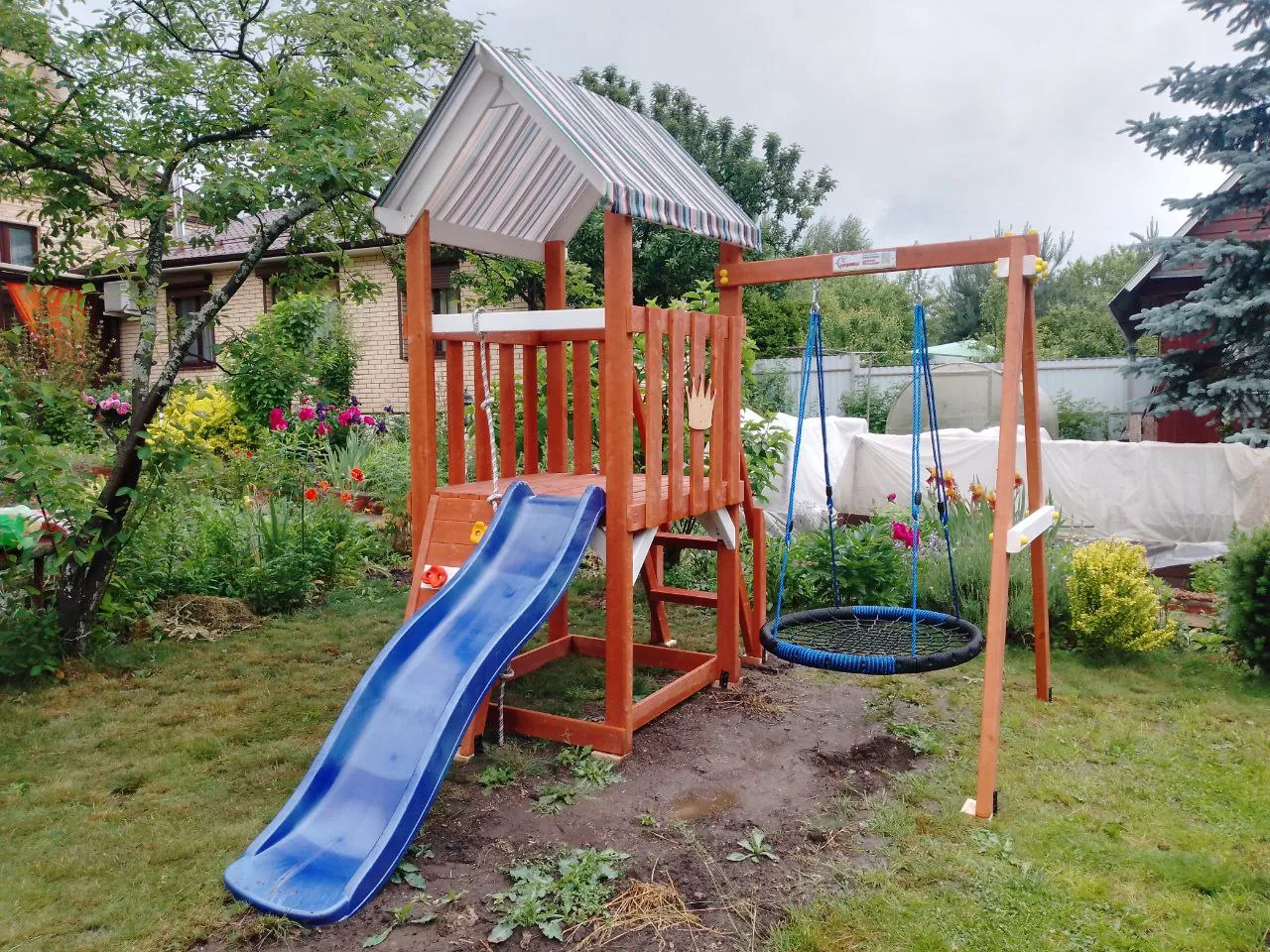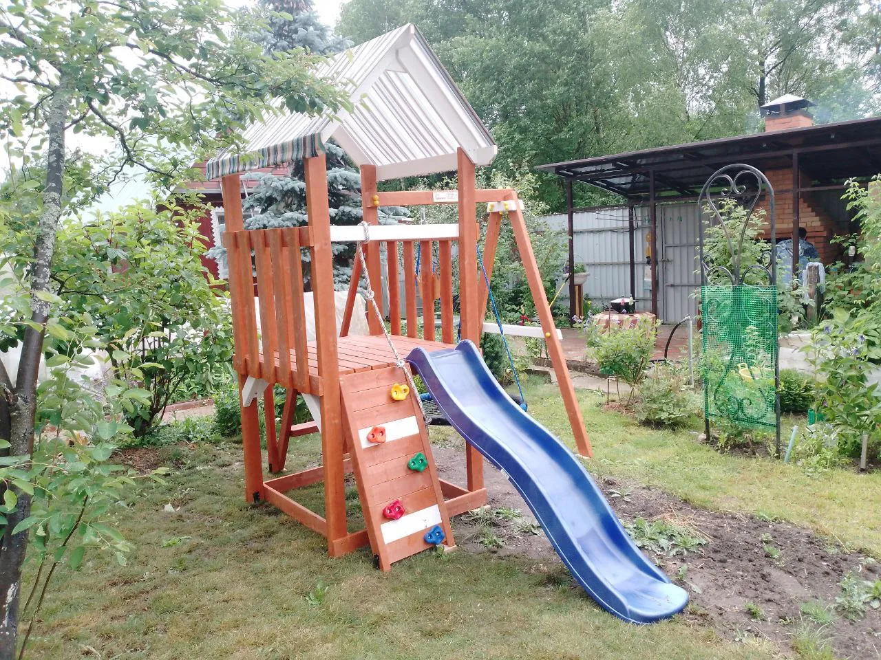 Это базовая модель серии, включающая всё самое необходимое: башню, горку, качели, скалодром. Без излишеств, но с продуманной безопасностью и устойчивой конструкцией. Подойдёт как первая площадка для малыша.