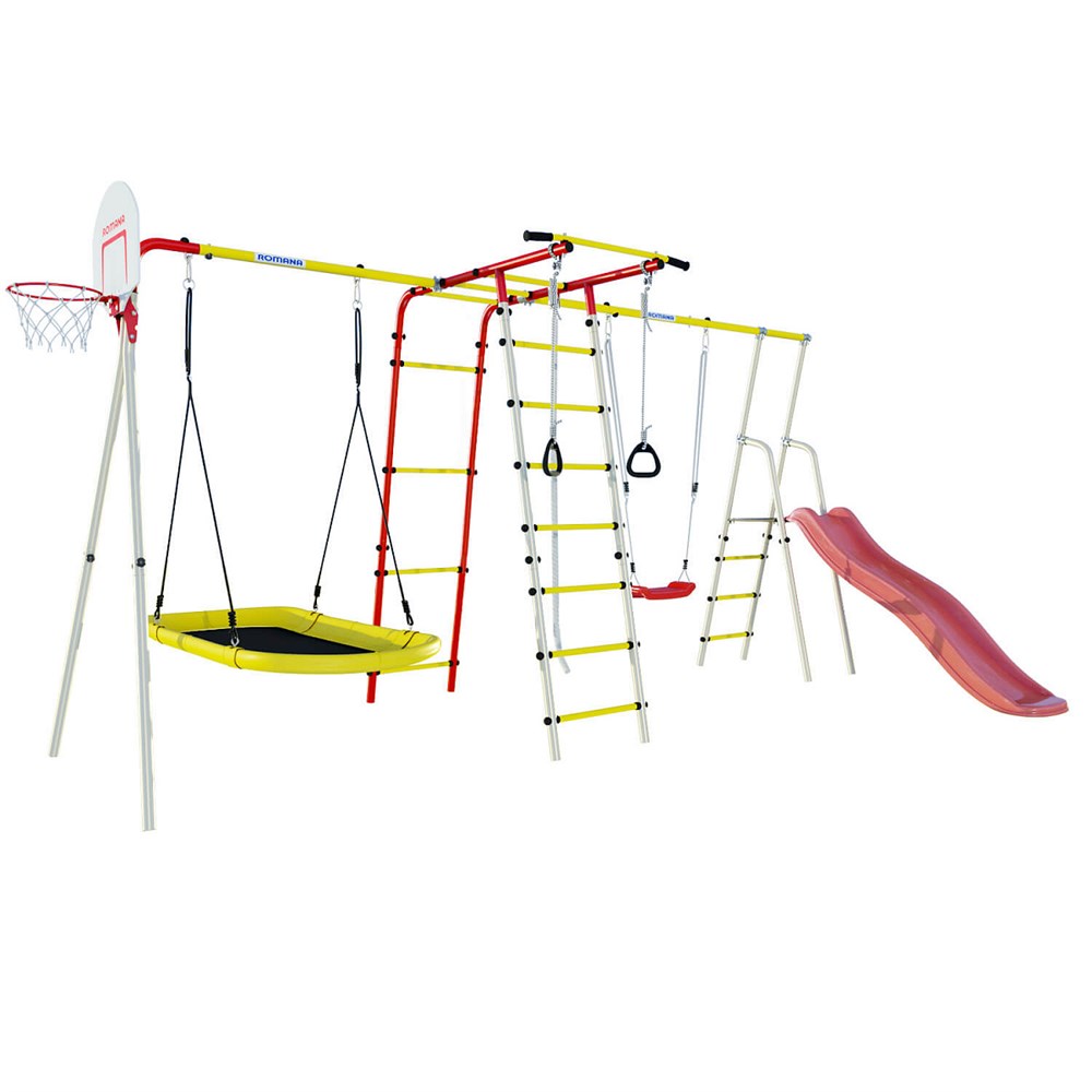 КОМПЛЕКТ ROMANA Лесная поляна - 3 NEW + Качели Лодка + Щит баскетбольный + Дополнительный комплект с горкой к дачному комплексу + Качели пластиковые