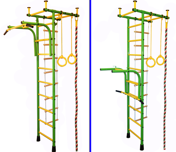 Комплектация: канат, кольца гимнастические, лестница верёвочная, турник - брусья ( внутренняя ширина 410 мм.; внешняя-495 мм.; одевается на трубу диаметром 25 мм. ).