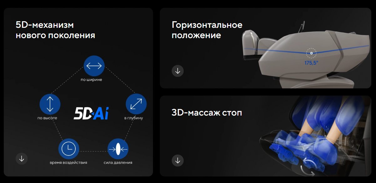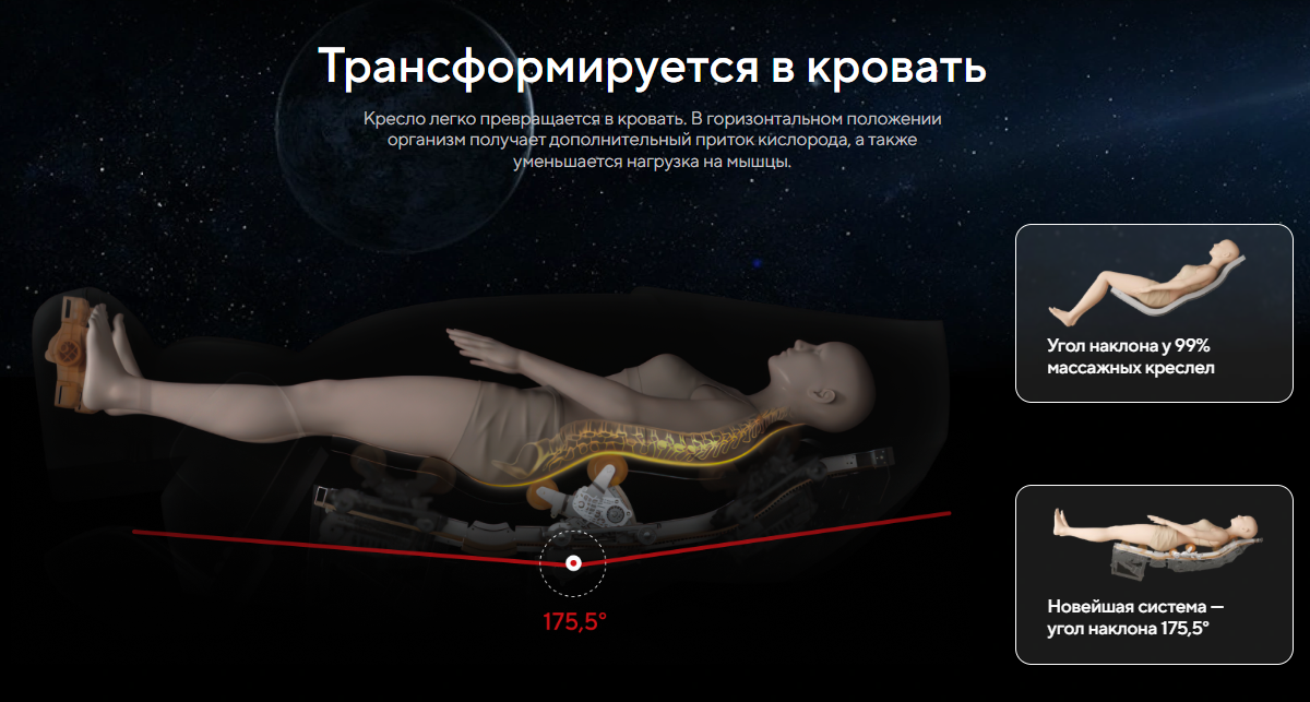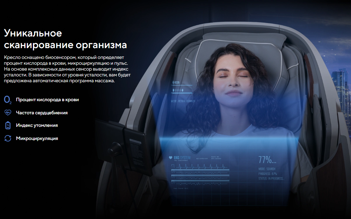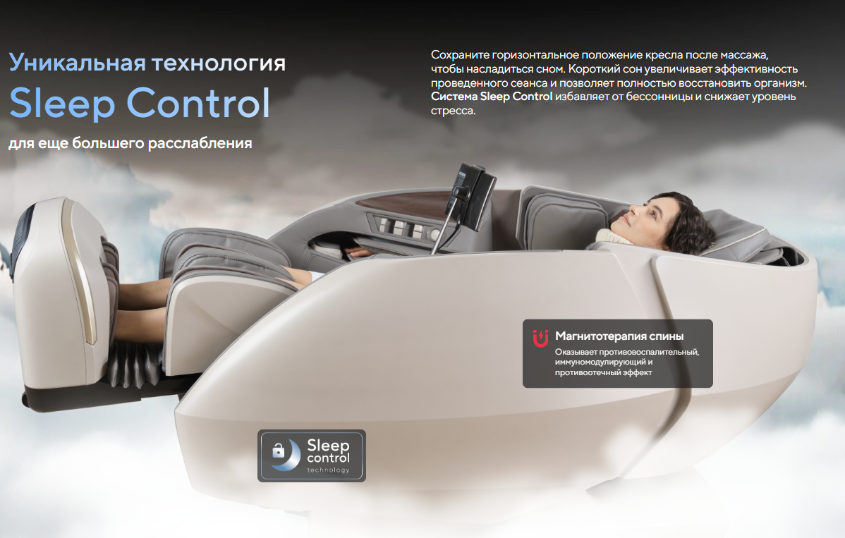 Инновационная модель, разработанная с учетом последних медицинских исследований. Кресло с 5D-системой, массажем стоп на 360° и технологией Sleep Control