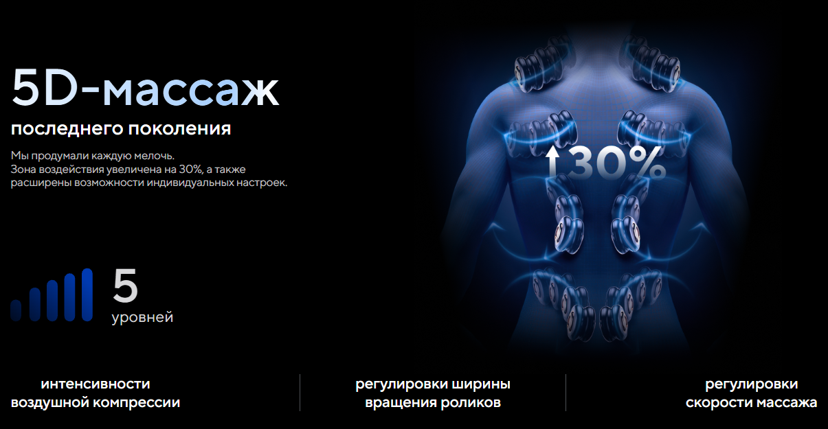 Регулировка интенсивности роликового массажа | 5 уровней |