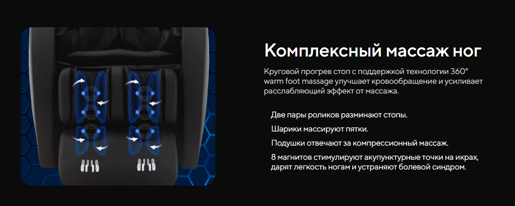 | Области массажа | Ахиллово сухожилие, Бедра, Голени, Икры, Плечи, Поясница, Руки, Спина, Стопы, Талия, Шея, Ягодицы |