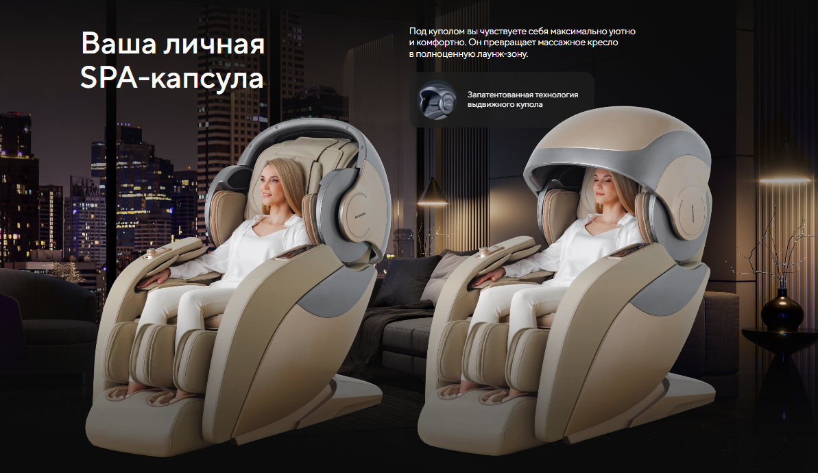 | Уникальные особенности | Выдвижной купол, Скручивание с твист растяжкой, Массаж стоп на 360 градусов |