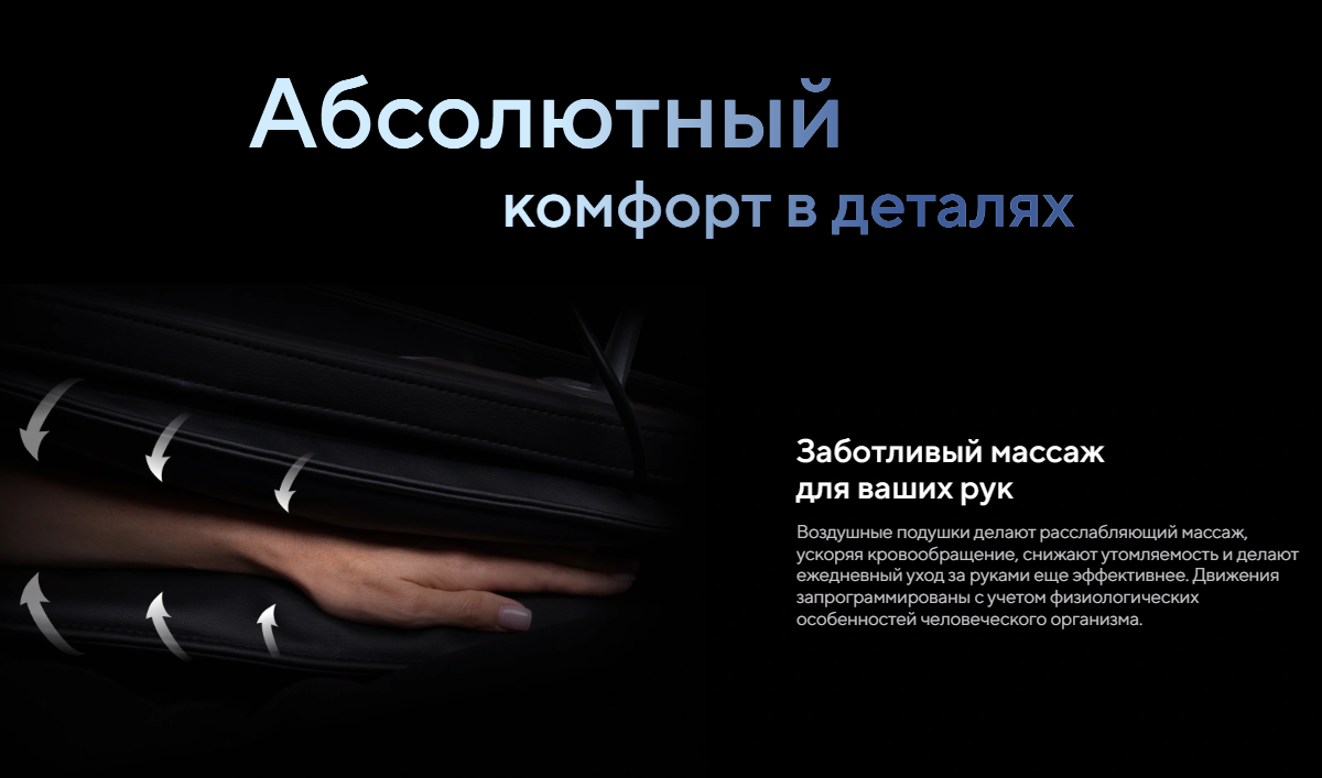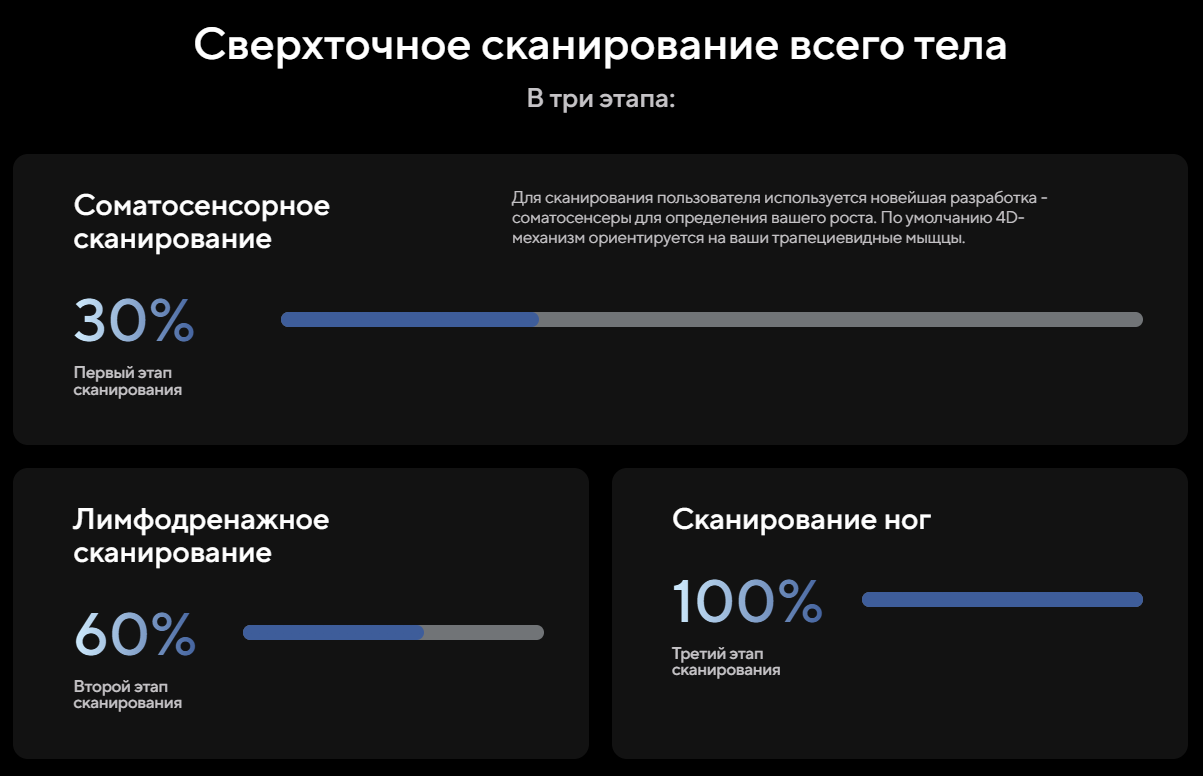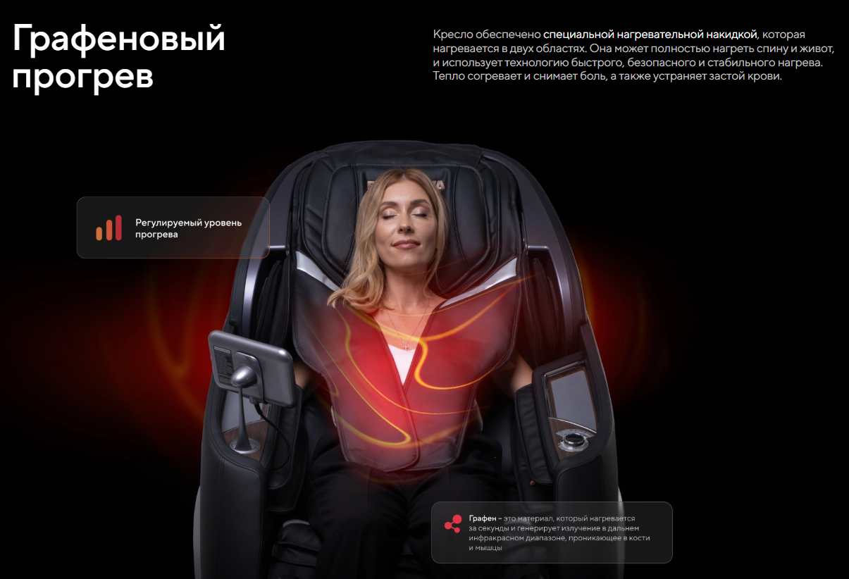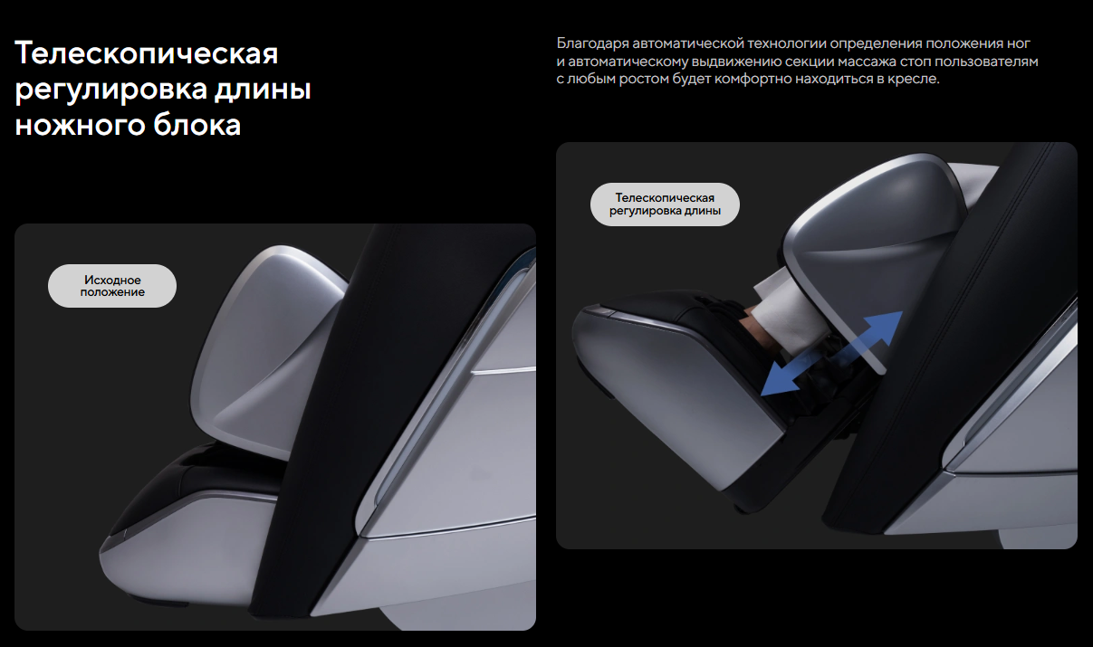 Функционал | Голосовое управление, Растяжка спины, Функция невесомости (Zero G), Прослушивание музыки через Bluetooth, Запоминание программ, Панель быстрого доступа, Беспроводная зарядка для телефона |
