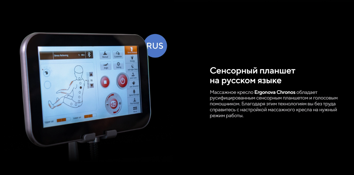 Ergonova Chronos создан для тех, кто любит глубокий качественный массаж и не готов идти на компромиссы. Впечатляюще широкий набор массажных техник, флагманский 4D-массаж, уникальные автопрограммыи премиальные материалы.