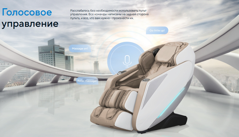 | Функционал | Голосовое управление, Растяжка спины, Функция невесомости (Zero G), Прослушивание музыки через Bluetooth, Панель быстрого доступа, USB-зарядка для телефона |