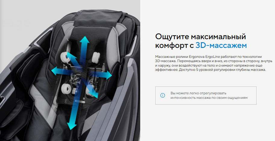 Движущиеся вдоль каретки ролики повторяют естественные изгибы и массируют все тело - от шеи до копчика.
