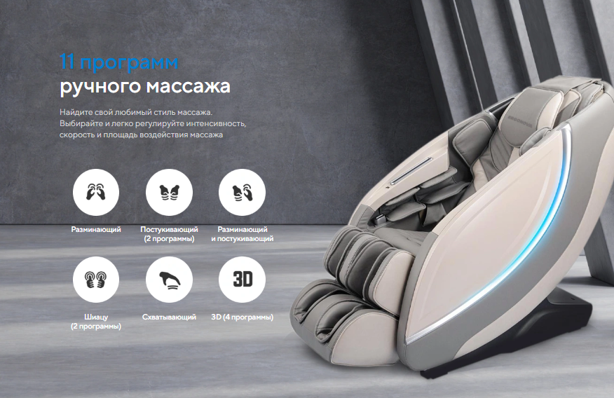 Ручные программы | Разминающий, Постукивающий (2 программы), Разминающий и постукивающий, Шиацу (2 режима), Схватывающий, 3D (4 программы) |
