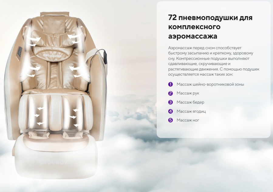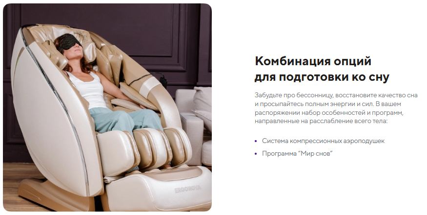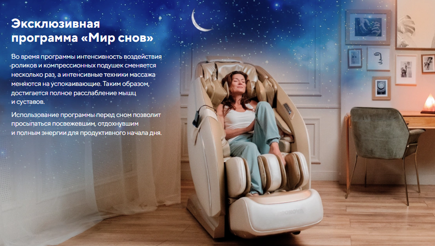 | Функционал | Голосовое управление, Растяжка спины, Функция невесомости (Zero G), Прослушивание музыки через Bluetooth, Панель быстрого доступа |
