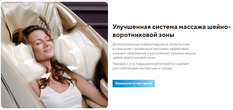 | Уникальные особенности | Дополнительные подушки для массажа шеи и плеч, Массаж головы, Дополнительные подушки для массажа стоп |