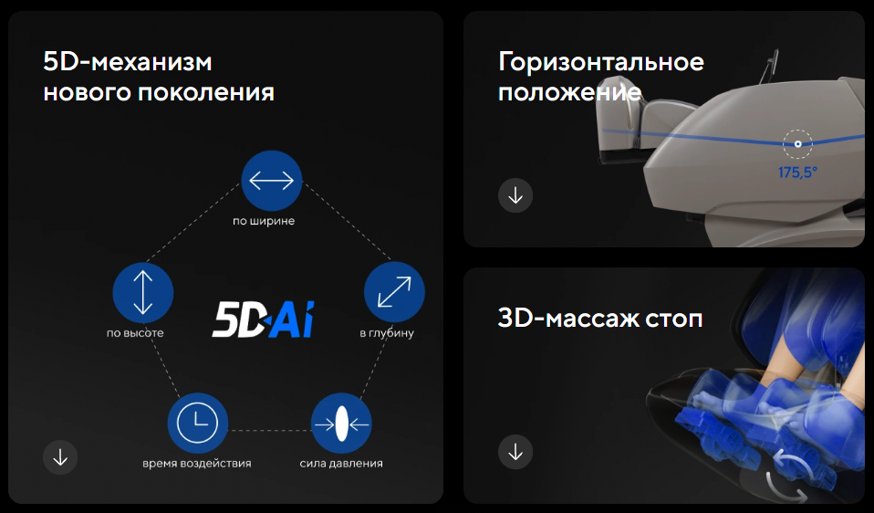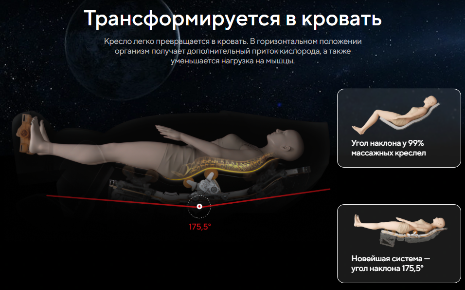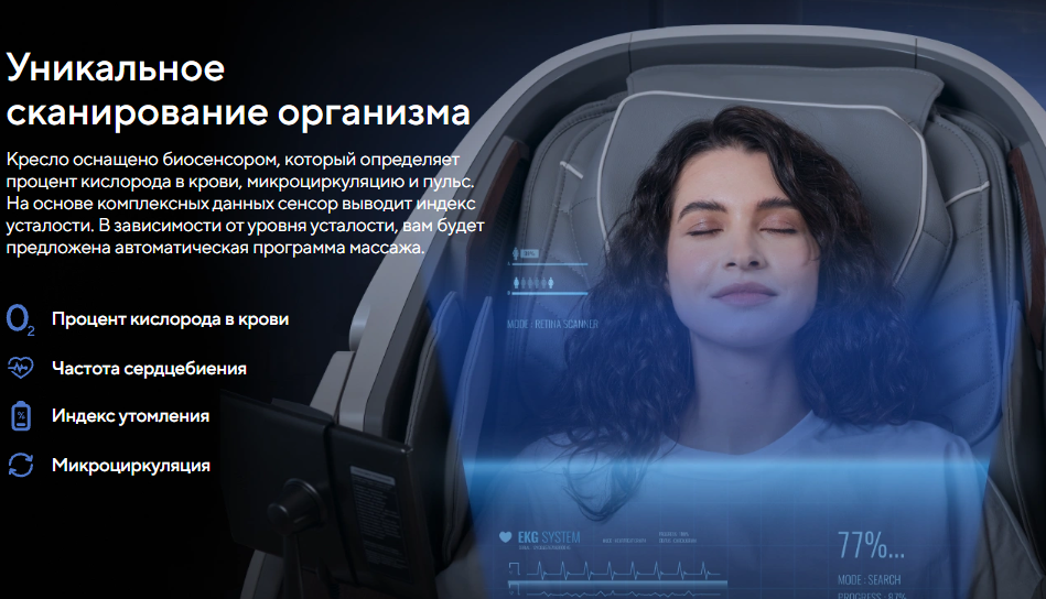 Инновационная модель, разработанная с учетом последних медицинских исследований. Кресло с 5D-системой, массажем стоп на 360° и технологией Sleep Control