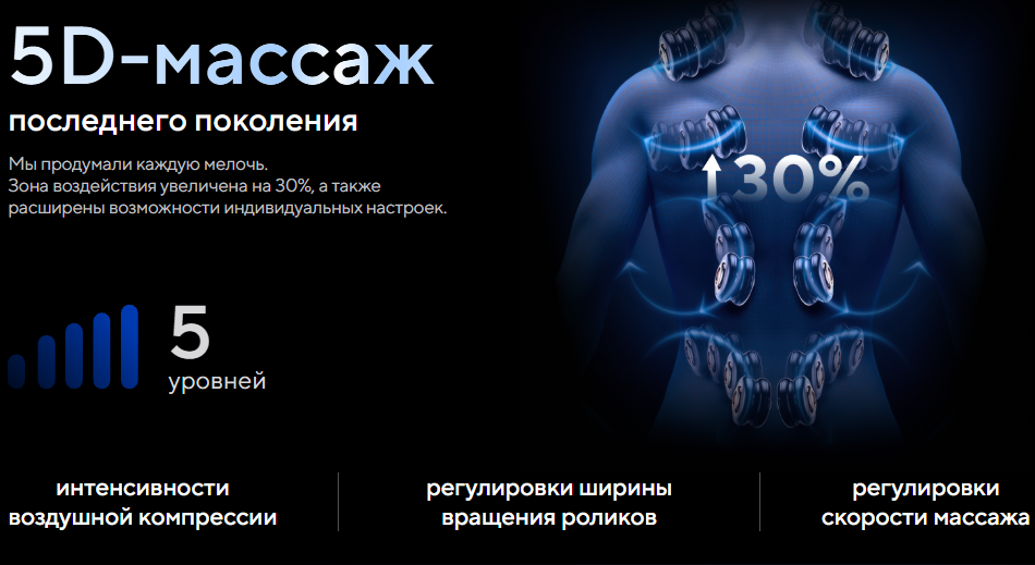 Регулировка интенсивности роликового массажа | 5 уровней |