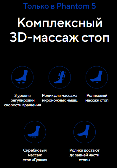 Ручные программы | 4 техники 5D-массажа, Стоп, Разминание, 2 техники постукивания, Разминание и похлопывание, Шиацу (2 режима), Схватывание |