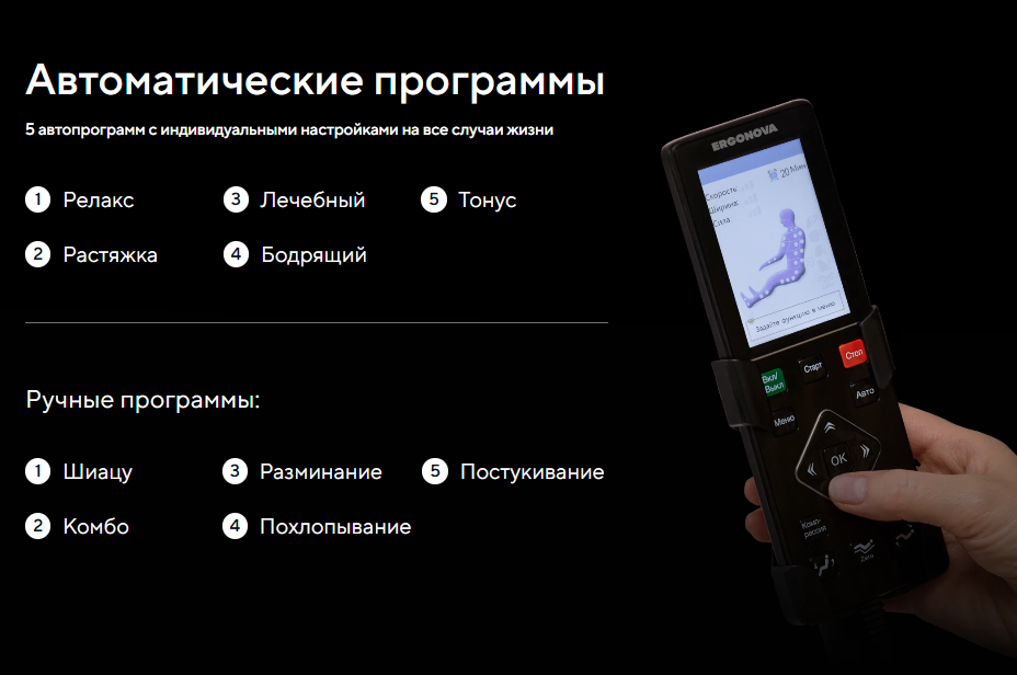 Ручные программы | Разминание, Постукивание, Похлопывание, Комбо, Шиацу |