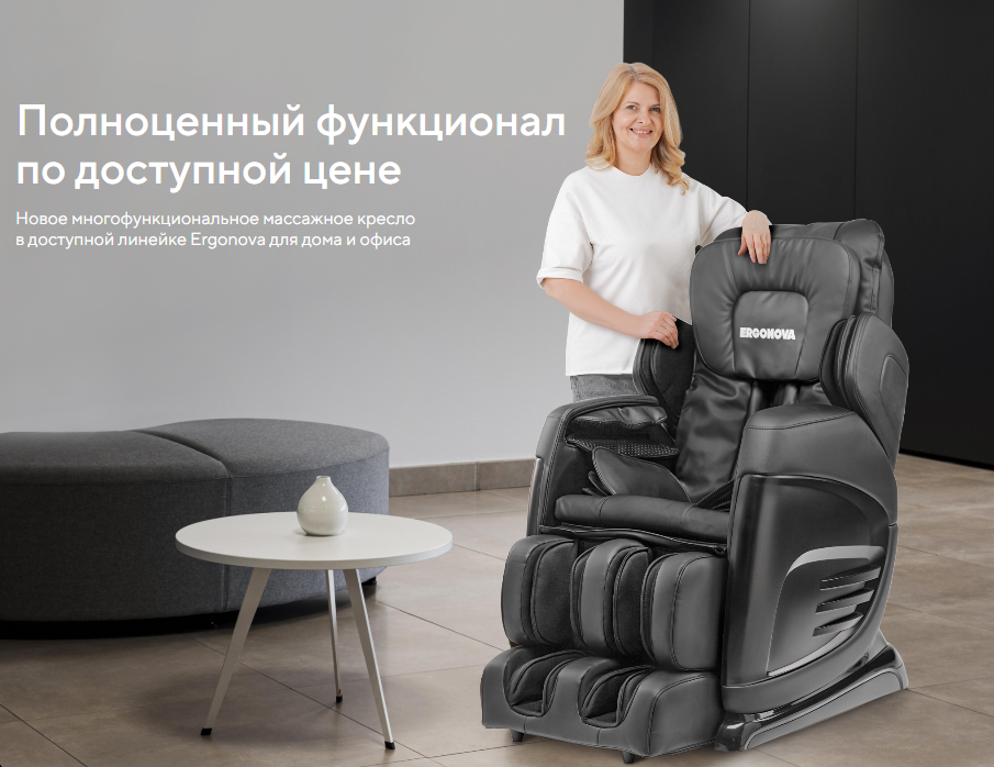Повысьте свою продуктивность с помощью массажного кресла Ergonova Sanatorium. Забота о себе и новые ощущения — путь к вдохновению!