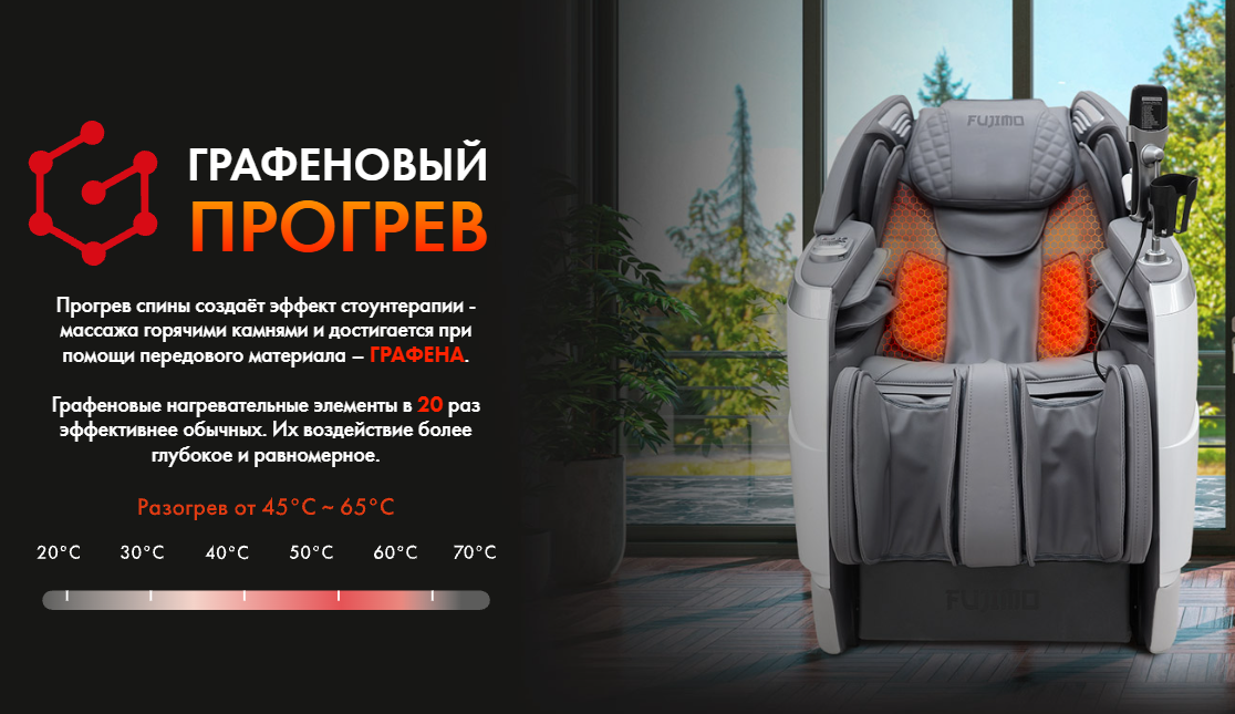 - Моментальный СПА прогрев поясницы и пальцев ног создается с помощью Графеновой технологии
