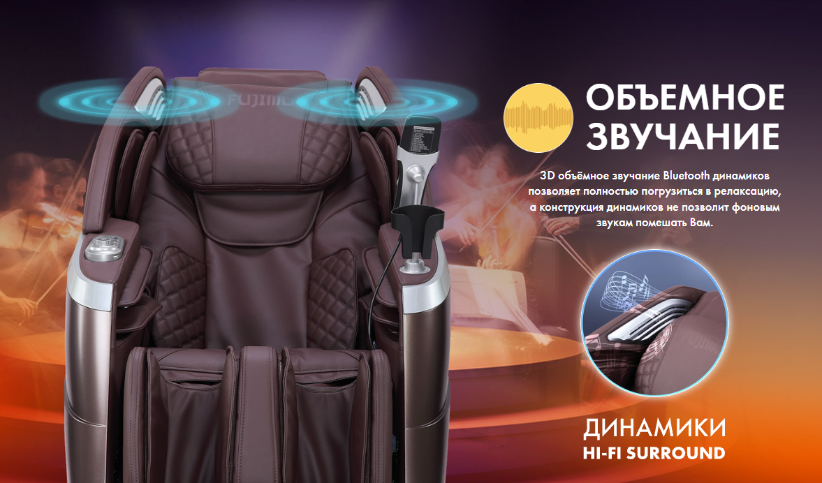 - Объемное звучание Bluetooth Surround динамиков HI-FI класса дополняет релаксацию в кресле