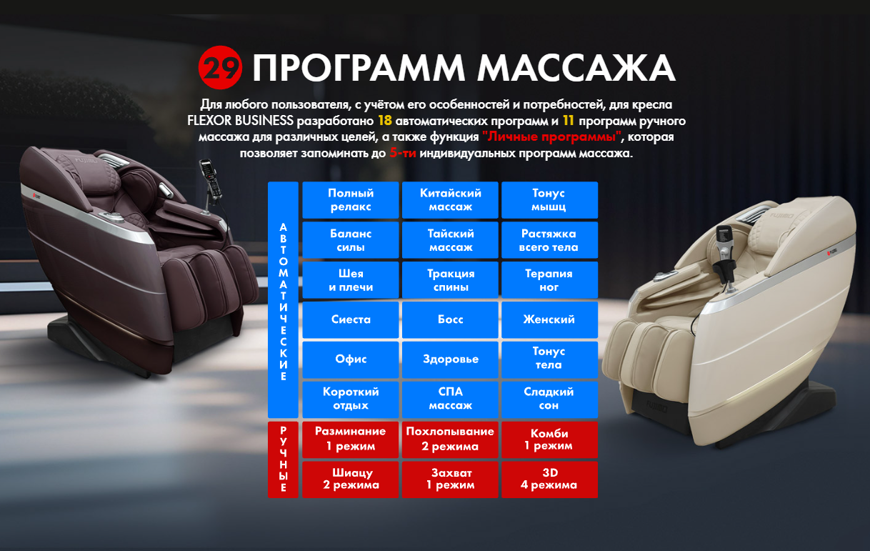 - Автопрограммы ПОЛНЫЙ РЕЛАКС, КИТАЙСКИЙ, ТОНУС МЫШЦ и СЛАДКИЙ СОН имеют эксклюзивное музыкальное сопровождение**