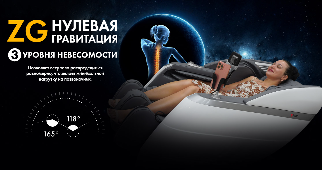 - Ощущения невесомости создано благодаря тройной технологии TRINITY ZERO-G с наклоном 118° и 165°.