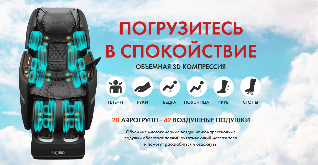 - Объемная 3D компрессия реализована с помощью 20 воздушных групп (42 многокамерных подушек)