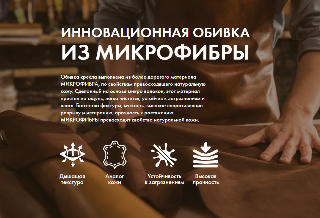 - Новый материал обивки из микрофибры по свойствам превосходит натуральную кожу