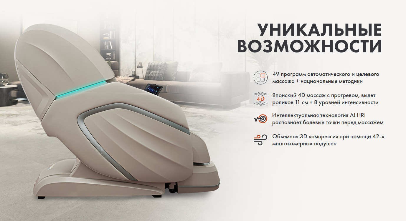 - Японский 4D механизм, имеет вылет роликов 11 см и 8 уровней регулировки интенсивности