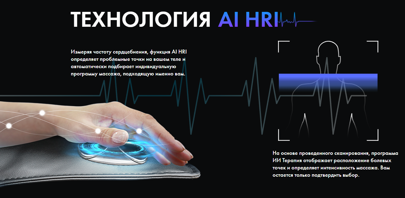 - Технология HRI распознает болевые точки тела при сканировании для интеллектуального массажа