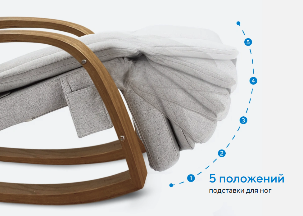 Регулируйте наклон подставки для ног, как вам удобно. 5 положений позволяют принять идеальное для расслабления положение тела.
