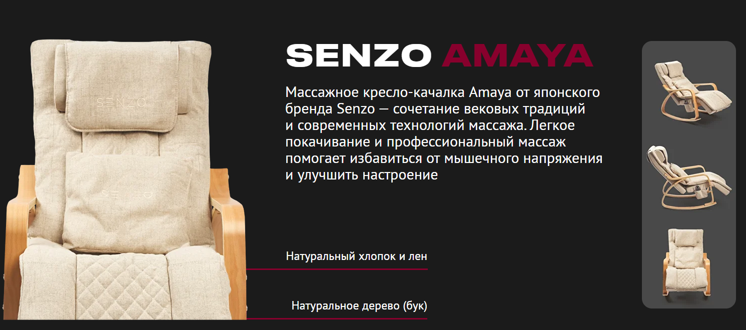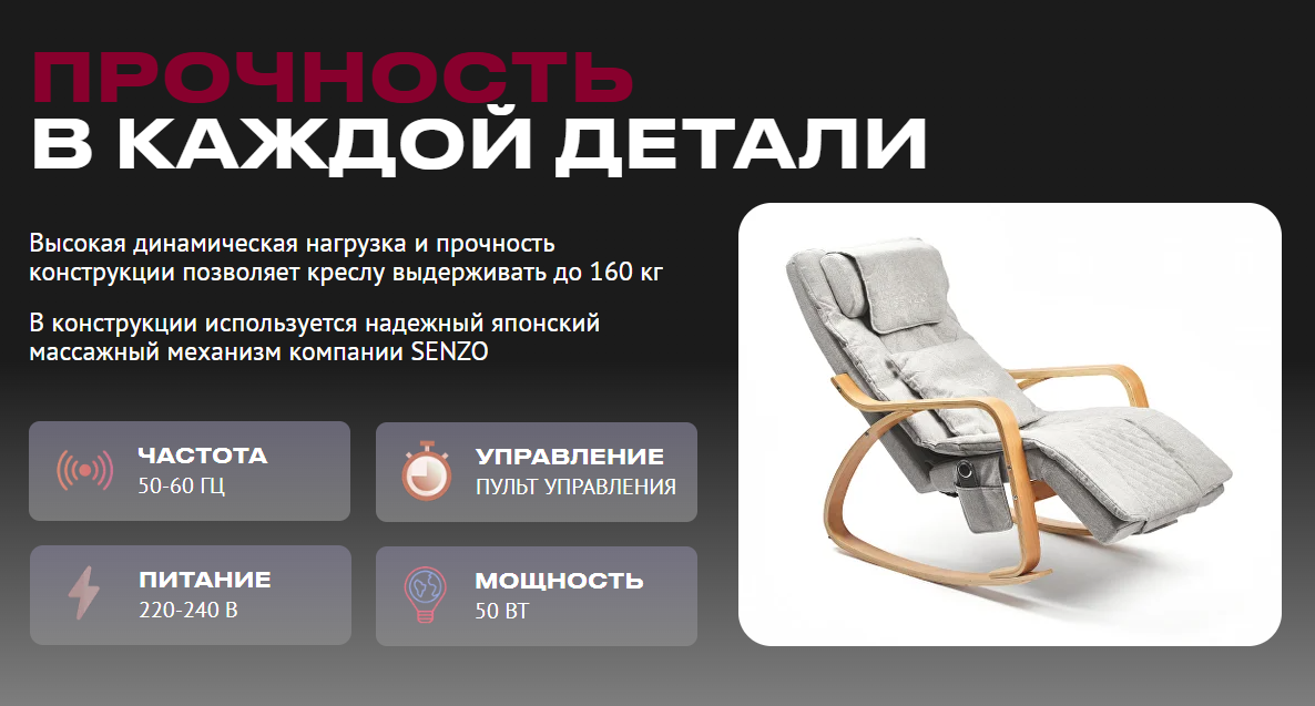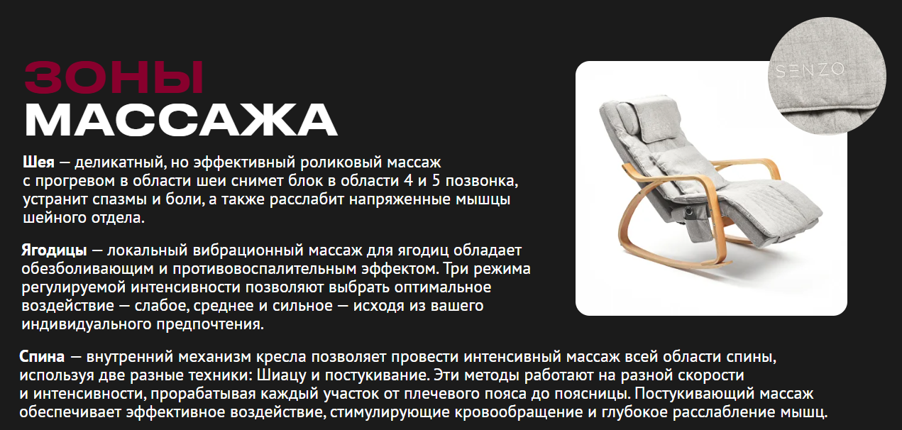 - в конструкции используется надежный японский массажный механизм компании SENZO