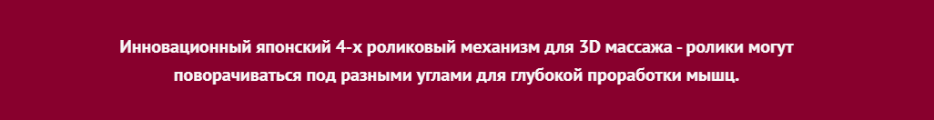 - Роликовый массаж бедер в сочетании с инфракрасным прогревом и воздействием массажных подушек обеспечивает эффективную проработку мышц бедер, снятие напряженности и зажимов