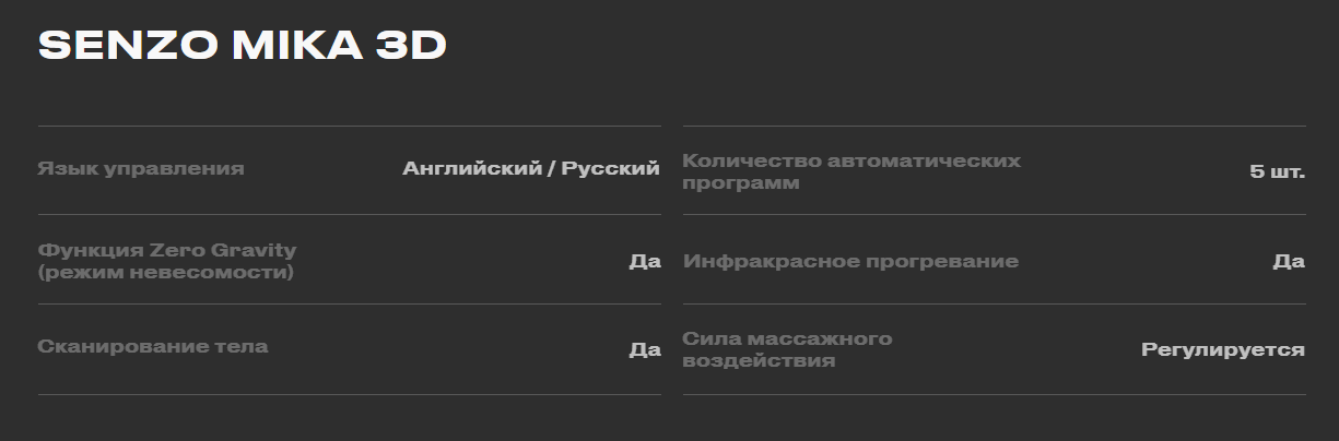 - Кресло обладает режимом "нулевой гравитации" Zero-G. Это положение максимизирует эффективность массажа, обеспечивая ещё более глубокое ощущение комфорта и расслабления