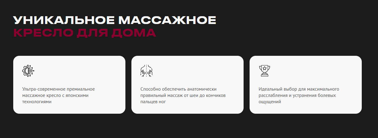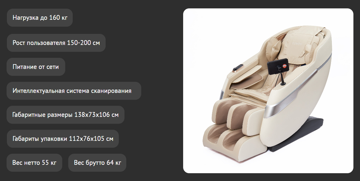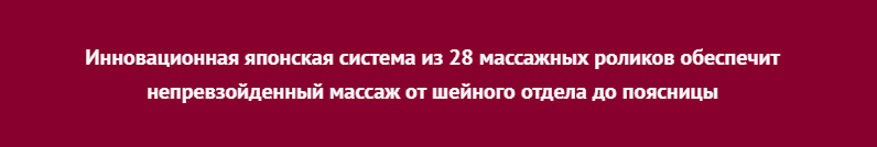 • Массаж в сочетании с инфракрасным прогревом и воздействием массажных подушек обеспечивает эффективную проработку мышц, снятие напряженности и зажимов