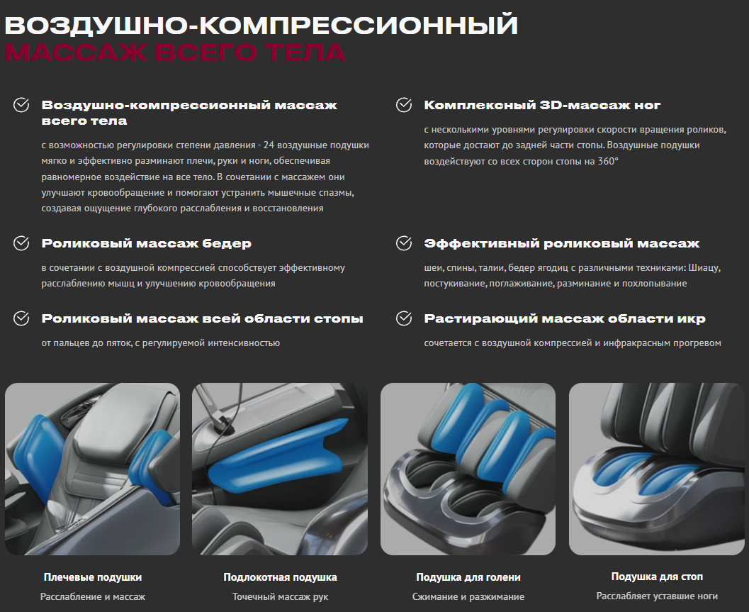 | Вид массажа ног | Воздушно-компрессионный / Роликовый |