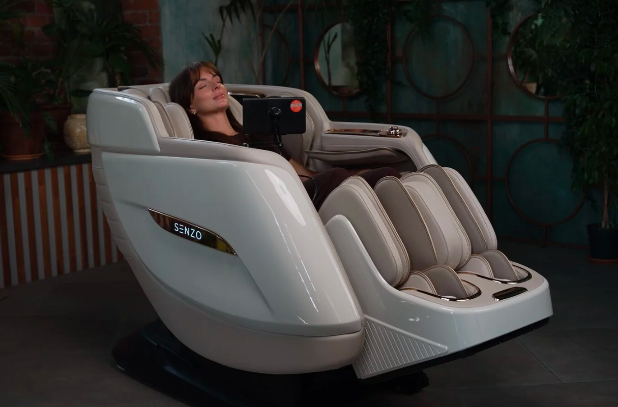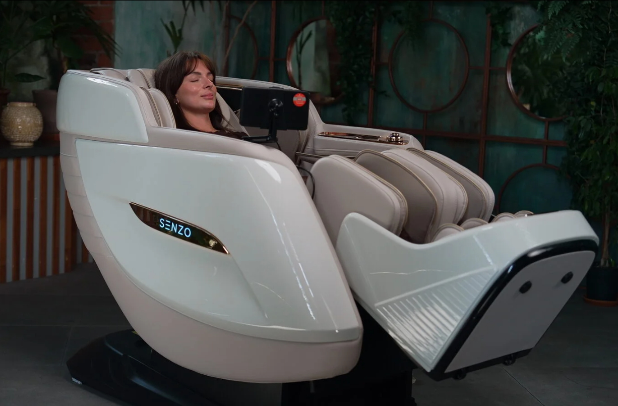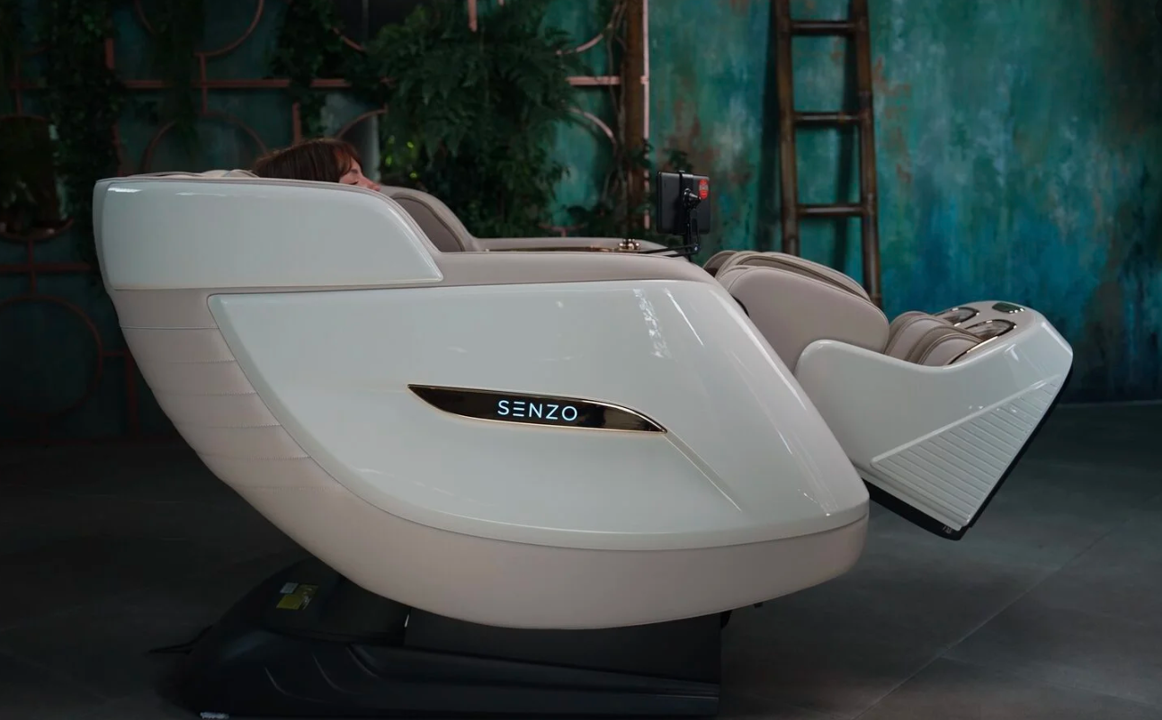 В отличие от обычных кресел с одним механизмом, перемещающимся по каретке вверх и вниз, Senzo Unkai оснащено двумя независимыми механизмами (4D в области плеч и спины и 3D в области ягодиц), которые оборудованы шестью массажными роликами.