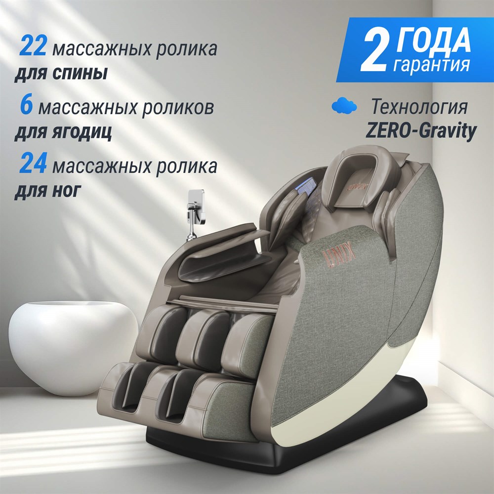 - Встроенные динамики позволят во время массажа слушать любимую музыку через Bluetooth со звуком Hi-Fi. Кресло позволяет синхронизировать вашу любимую музыку с массажным механизмом. Расслабьтесь под свою любимую музыку и получайте удовольствие с массажным креслом UNIX Med. Массажное кресло не только функционально, но и стильно. Элегантный дизайн и качественные материалы позволят ему гармонично вписаться в любой интерьер. А благодаря TFT экрану с удобными настройками и простым управлением вы сможете легко переключаться между режимами массажа, не вставая с кресла.