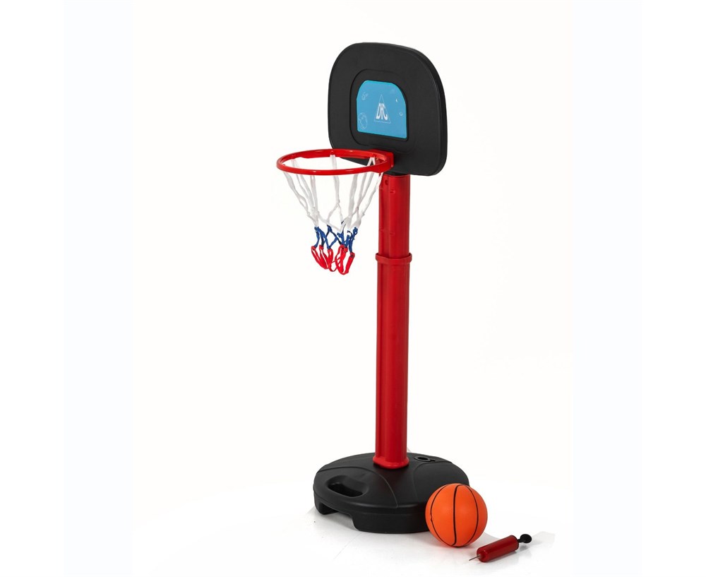 В комплекте со стойкой идет детский баскетбольный мяч для игры и насос.