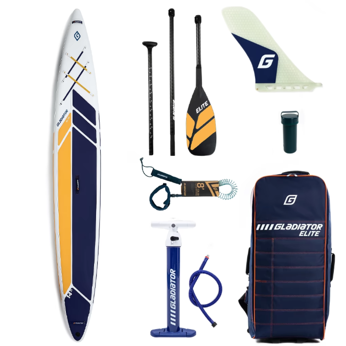 SUP Gladiator Elite 14'0 R укомплектован вместительной и стильной сумкой на колесиках, разборным карбоновым веслом, итальянским насосом двойного действия, оснащенным манометром, удобным лишем и ремкомплектом. Качество SUP досок Gladiator соответствует самым строгим международным стандартам. Для производства наших моделей мы используем только лучшие сертифицированные материалы от ведущих мировых производителей. Это гарантирует безопасность и долговечность наших SUP досок. Каждый SUP борд перед отправкой на склад проходит тестирование в надутом состоянии под максимальным давлением в течение суток. Мы проверяем внешний вид самого SUP и всех его аксессуаров, прочность швов, качество склейки, работоспособность клапанов, крепление деталей. На все наши SUP доски распространяется фирменная гарантия 3 года.