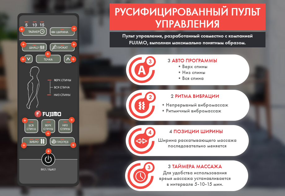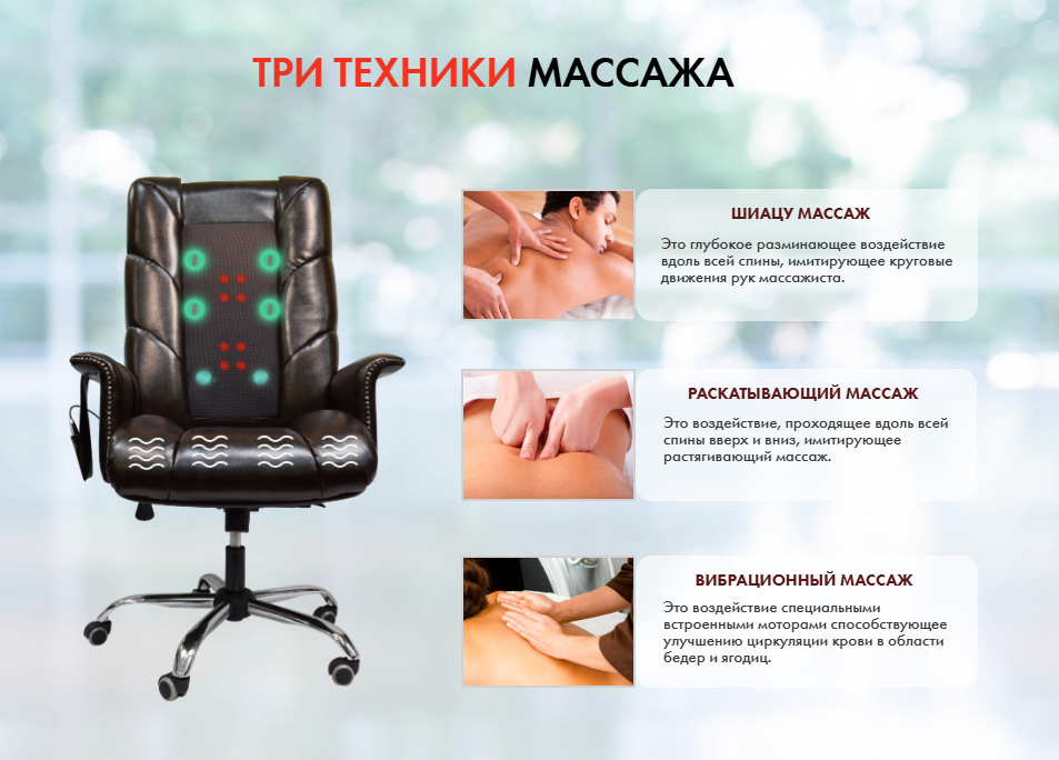 • В конструкции используется японский массажный механизм компании FUJIMO