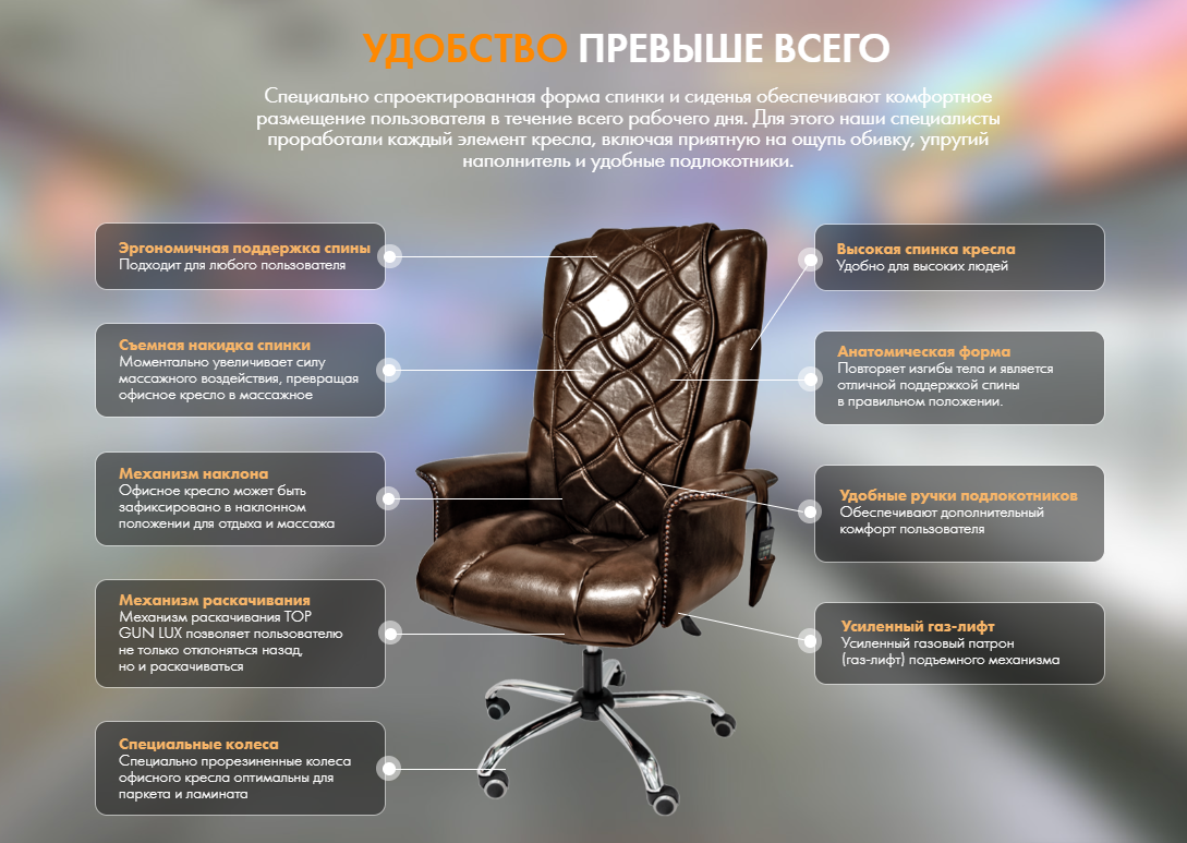 • Усиленный газовый патрон (газ-лифт) с нагрузкой 130 кг