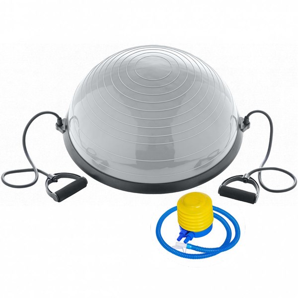 Полусфера BOSU гимнастическая BOSU055-22, 58см., (серый) в комплекте с эспандером и насосом (B31663)
