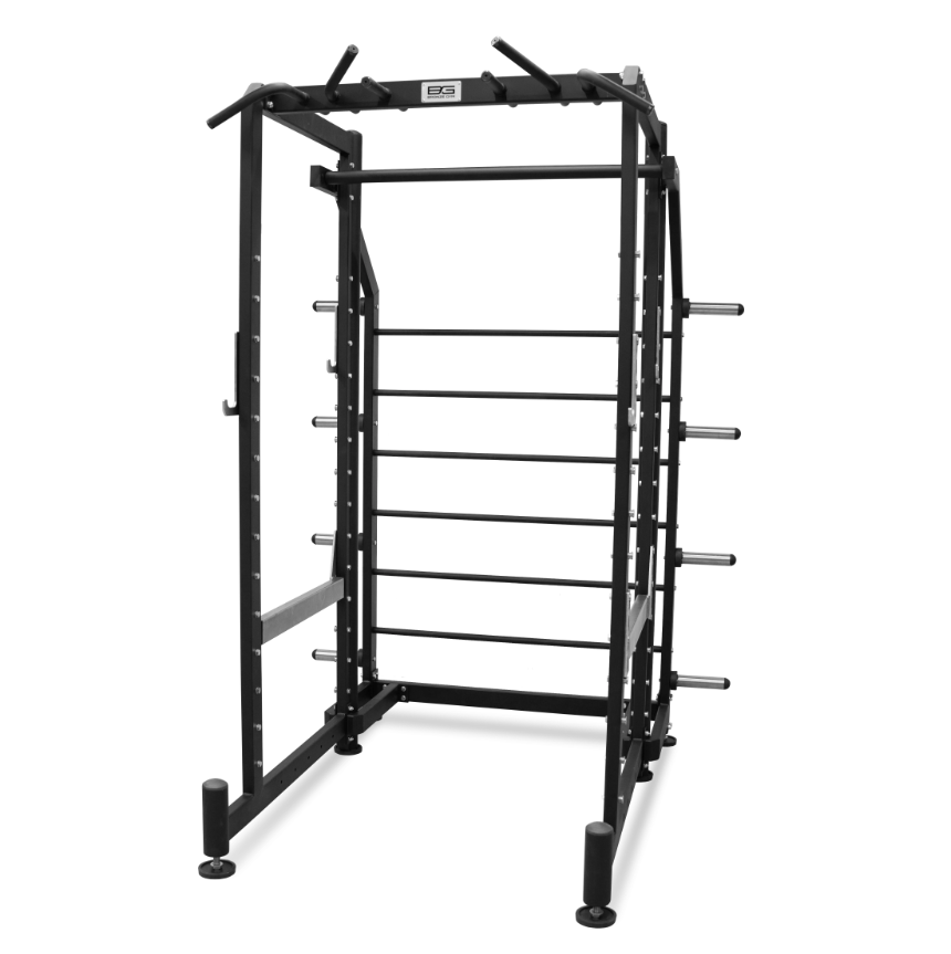 Силовая рама для приседаний AL-314 от BRONZE GYM имеет надежную и прочную конструкцию, которая включает в себя страховочные ограничители и съемные крюки для грифа. Также, для занятий без штанги предусмотрены турники с многопозиционными хватами и зацепы для подтягиваний. Изделие подходит для пользователей различного роста и телосложения. На задних стойках рамы расположены 6 держателей для стандартных олимпийских дисков. Рама для приседов с профилем основной станины 80*40*3 мм. для полноценного коммерческого использования.