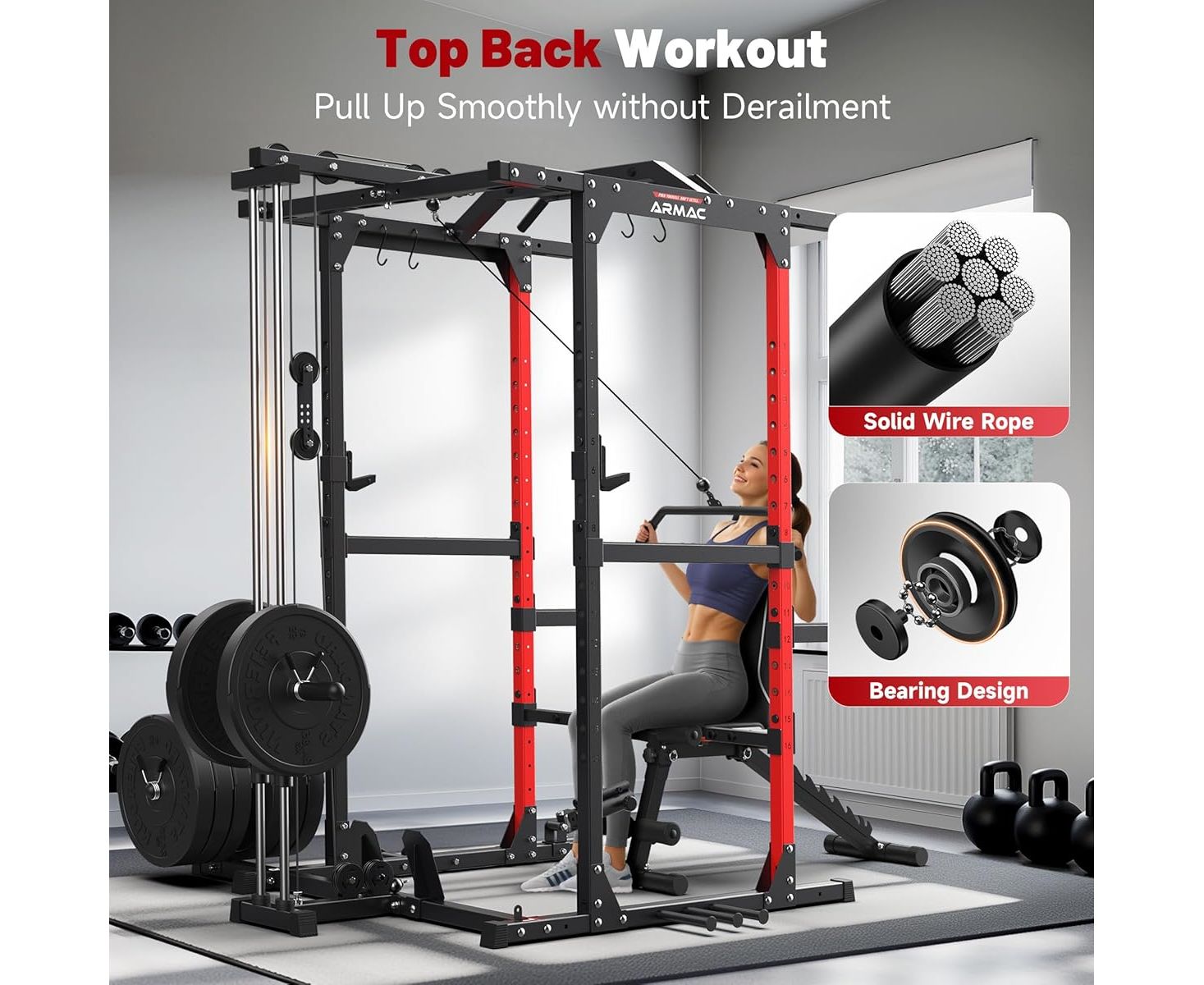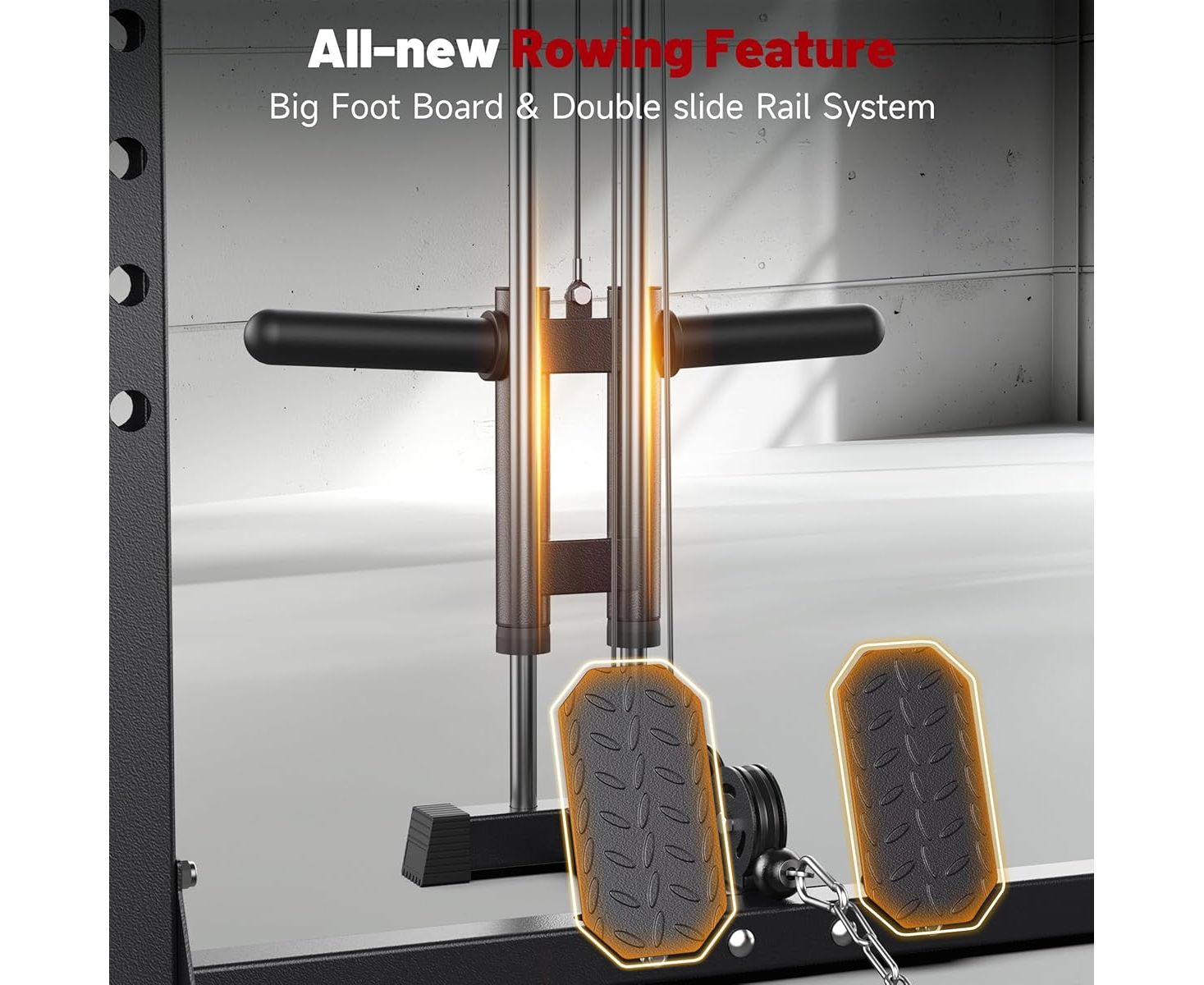 Максимальный вес пользователя составляет до 120 кг, что обеспечивает безопасную и комфортную эксплуатацию тренажёра для пользователей разного уровня подготовки. Рама имеет прочный профиль и посадочный диаметр, а толщина тросов и рукояти для тяги обеспечивают надёжность и стабильность при выполнении упражнений.