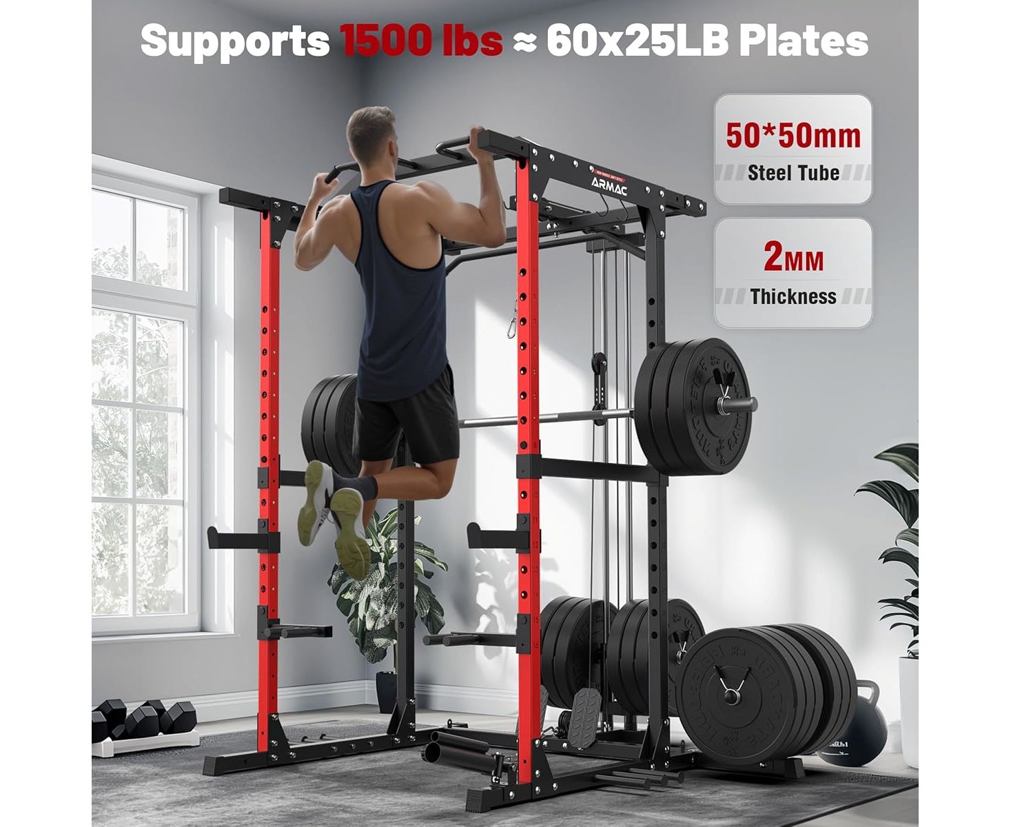 Силовая рама многофункциональная DFC D029 — компактное и удобное решение для домашних тренировок, позволяющее выполнять широкий спектр силовых упражнений, включая подтягивания, отжимания на брусьях, тягу верхнего и нижнего блока.